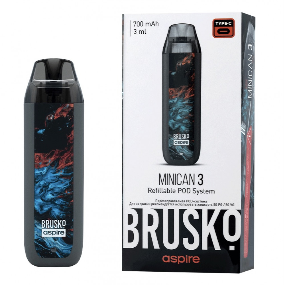 Перезаправляемая Под-Система Бруско Миникан 3 (Brusko Minican 3) 700 mah, Серый Флюид - купить в Донецке